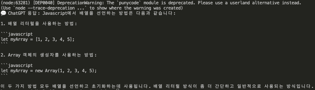 Node.js에서 ChatGPT를 사용하는 기본적인 방법에 대해 알아보았습니다.